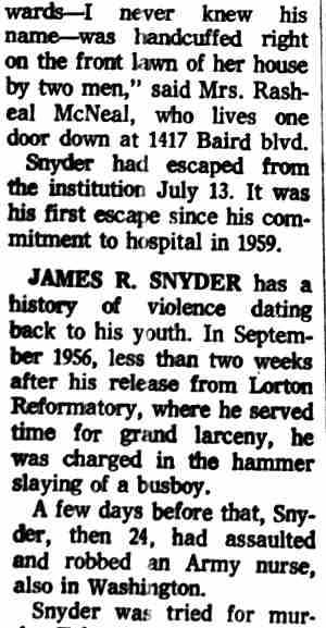 Snyder, Appellant (three Cases), Appeal from the United States District Court for the District of Columbia (Criminal No. 1079-56). |