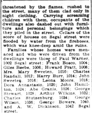 ward - Howard Fisher james e. tatem - elisha a. gravenor - E.G.C. Bleakly anthony "babe" paradise - "pye" Calletino - William Draper Tony Latorre - Ira Hall - george v. murry - harry "dutch" Selby Gus Davis - Albert "Salty" Cook - Ned Galvin - James Wilson Sycamore Street - Pine Street - Rosetta Blue - Deena Howard Minnie Draper - Harry Knox - Blanche Martin - Jesse Smith Antonio Pelle - Ethel Murray - Paulo Genovese - Nazzara DeVecches Nino Mercandino - south 2nd street - South 3rd Street - South 4th Street Ann Street - Baxter Street - sycamore street - Line Street - Pine Street |