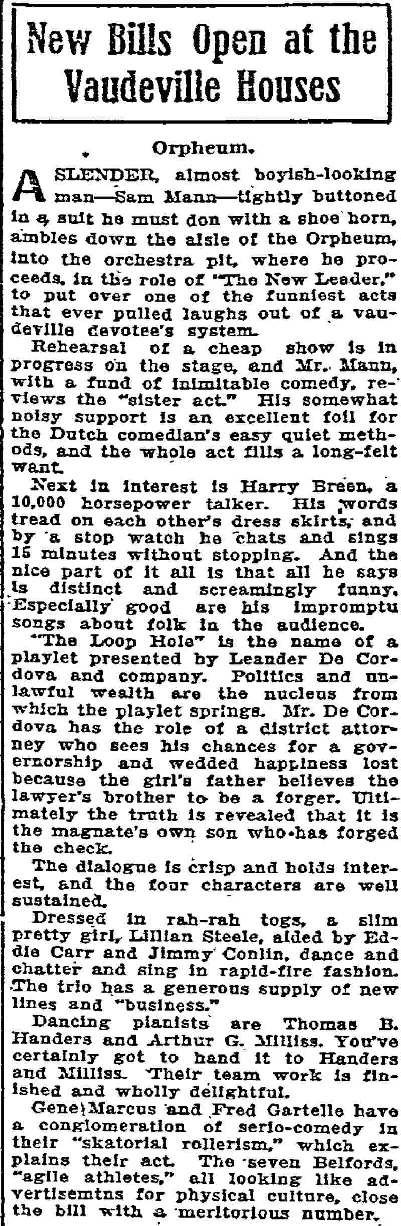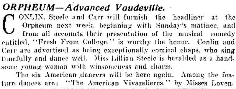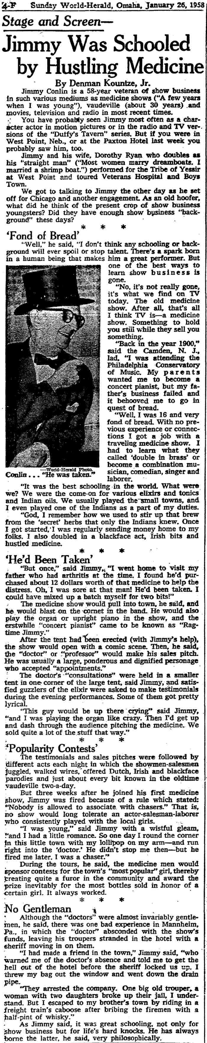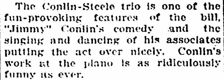 Conlin's Filmography from IMDB.com Note: IMDB.com is/was not aware of his appearance in Sharps and Flats (1928) or of his and many others' appearances in the 1960 televison production of Around the World With Nellie Bly |