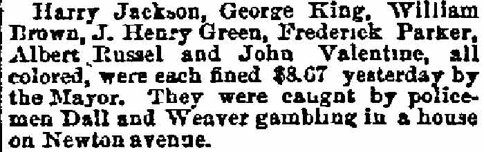 Harry Mines, not named above, is in the first row between H. Frank Petttit and Edward Hartman. In the fifth row, at the far right, "John Barnett" was a guess on the part of A. Lincoln James. Another person guessed George Johnson. Both were wrong and it is not known who that policeman is. |