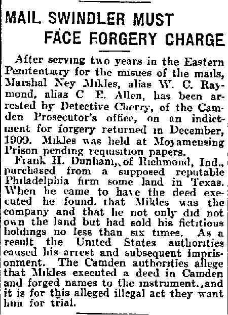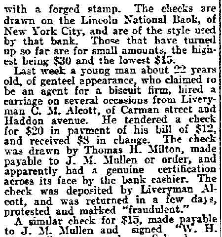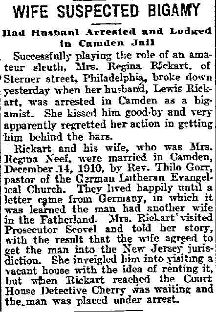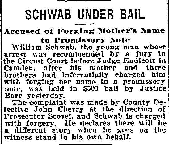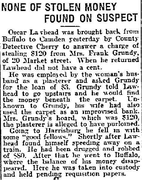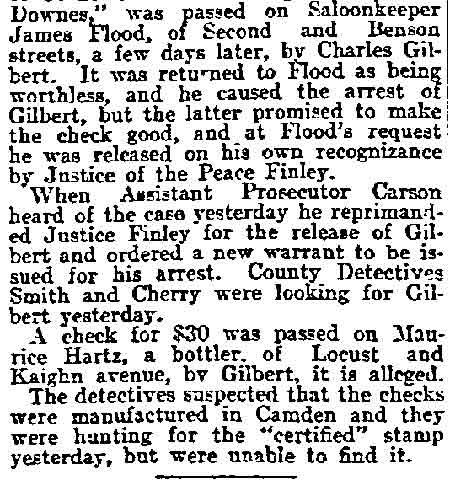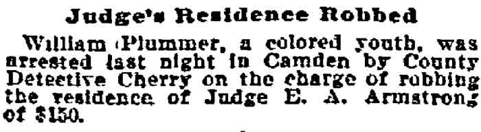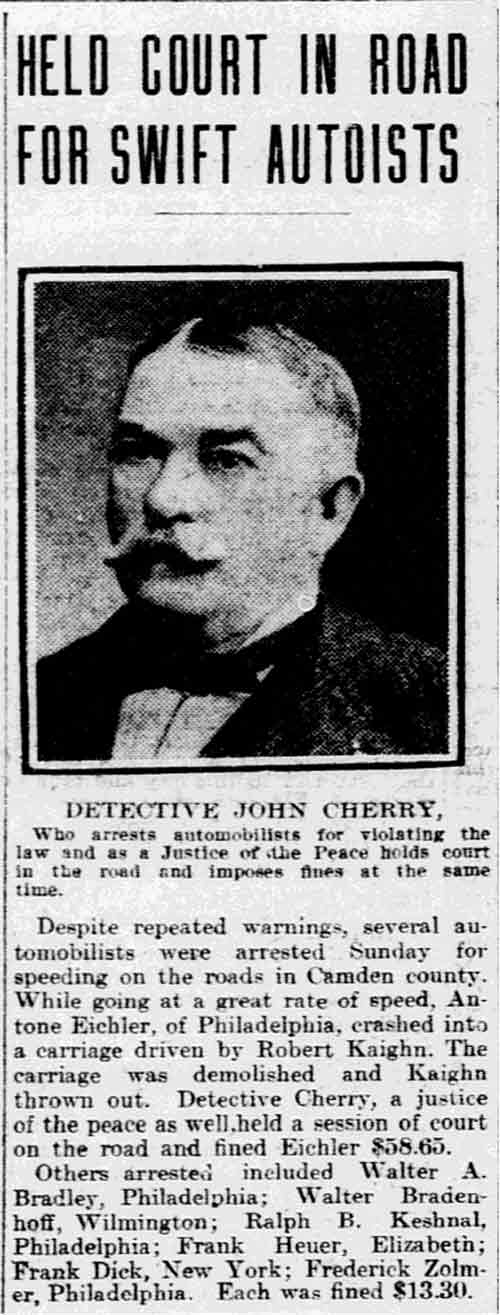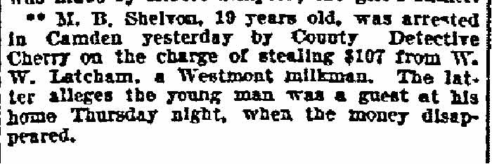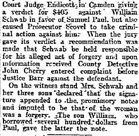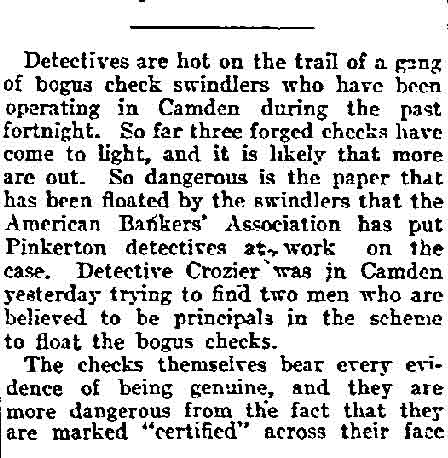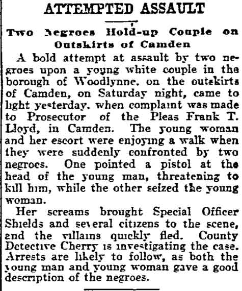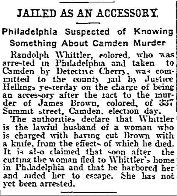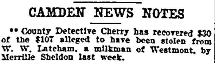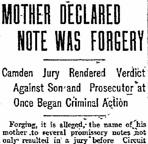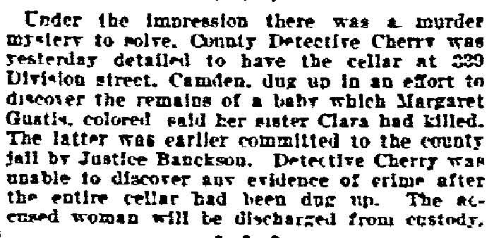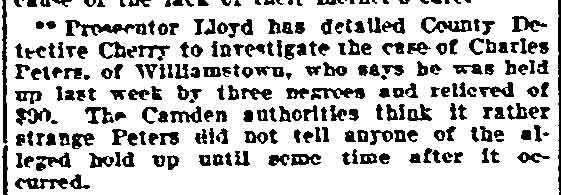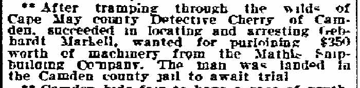 l l l l l l l l l l On October 1, 1902 Paul Woodward murdered two young boys by giving them poison. Frank T. Lloyd, then Camden County prosecutor, was responsible for leading the investigation and prosecuting the case. County Detective Cherry was involved in the investigation. Woodward was arrested on October 4, 1902. Detective Cherry was present later that day when Woodward was identified as being seen with the two victims. Woodward was indicted, tried, convicted of murder in the first degree, and on January 7, 1903 executed at the Camden County Jail.