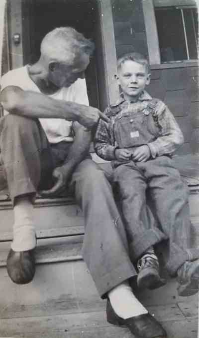 Young Norbert Sorensen with Camden Fire Department member John D. "Jake" Huelas at 910 North 24th Street, circa 1948. Norbert and his brother Richard Sorensen both became Camden firefighters, as did John Huelas's som, Bill Huelas.