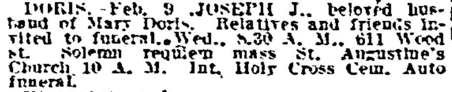 John Doris - Frank Doris - Joseph O'Connor aka Joseph Connors - Broadway - Kaighn Avenue |