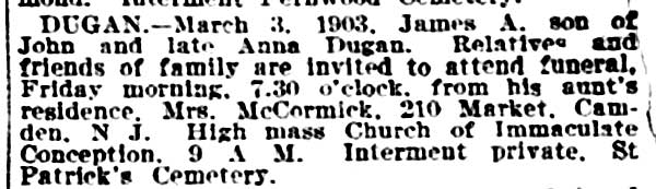 DUGAN is recorded as having served as an extra man with the Camden Fire