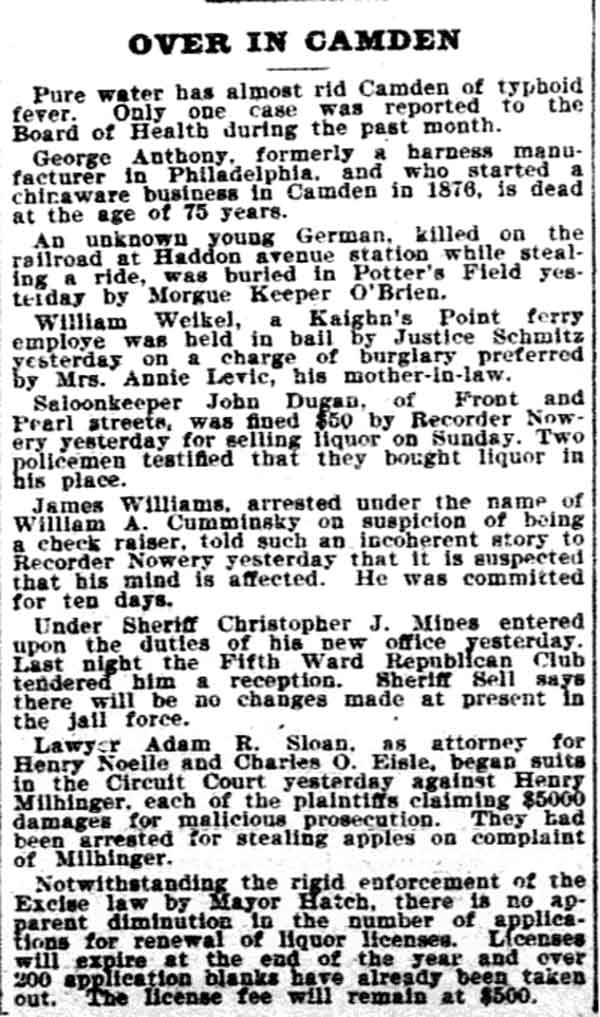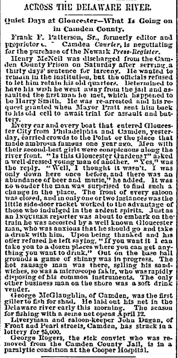 Philadelphia Inquirer April 2, 1889 Camden Horse Car Company |