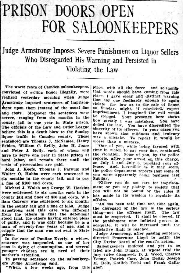 June 26, 1900 John Carroll - George B.M. AdamsWalter S. Hubbs - john keefe Fogarty Avenue - Carman Street John Daly - North 7th Street William Gallagher - Kaighn Avenue Charles E. Bakley - Federal Street South 3rd Street - John H. Jones North Front Street George W. Hoskins Main Street - William Convery North 11th Street - Carpenter Street John Opfer - Pearl Street john dugan - Michael J. Walsh |