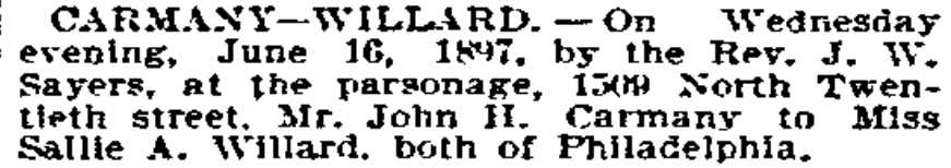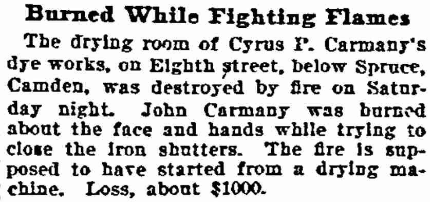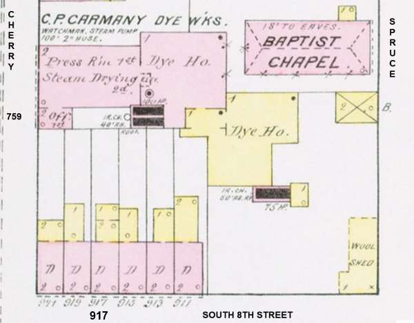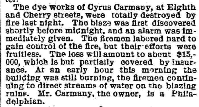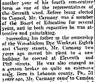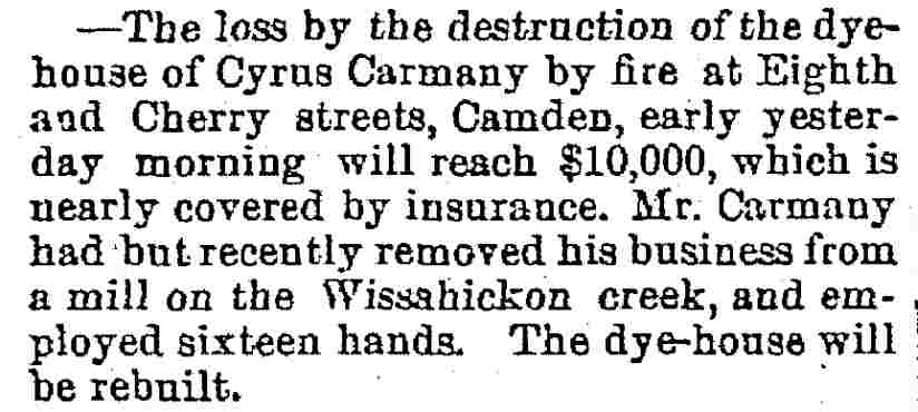 Cyrus O. Carmany - John H. Carmany - Wissahickon Dye Works - South 8th Street - Spruce Street |