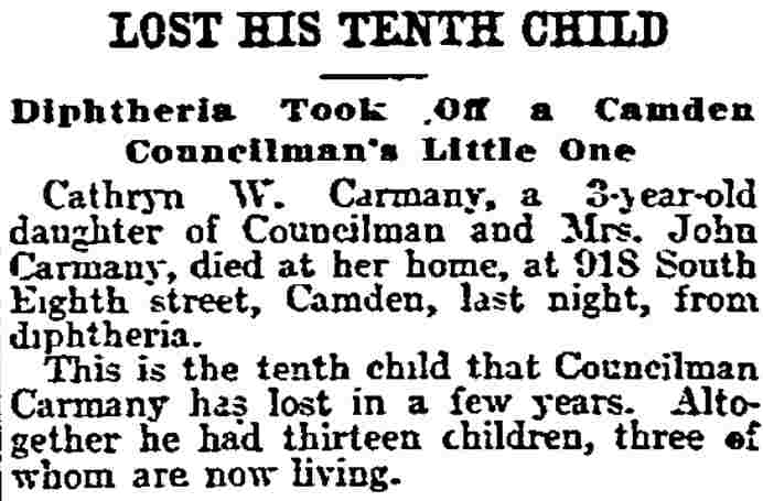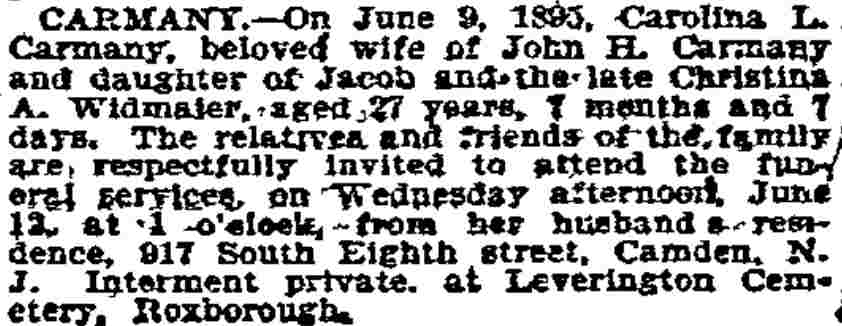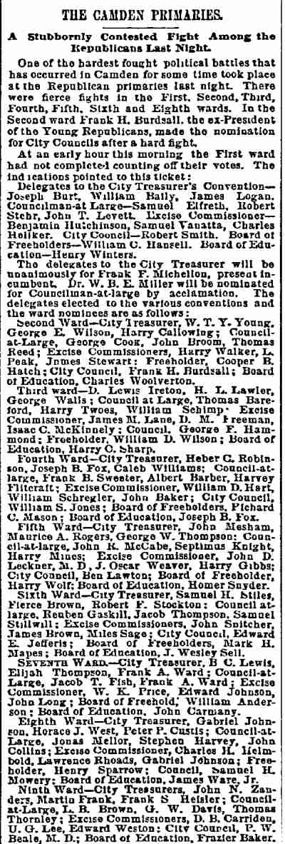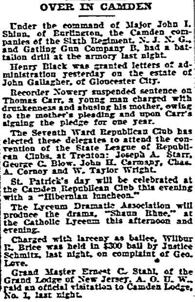 Evening Times December 8, 1887 Apparently someone at the Trenton paper got the "when" wrong |