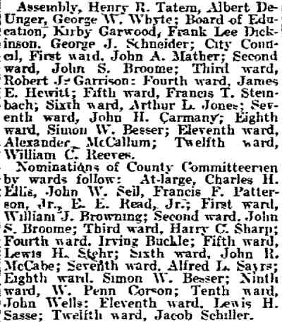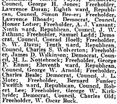 J. Bradley - Edward E. Jefferis Charles H. Daubman - George S. West Lewis H. Mohrman - Edward Barto Joseph Potter - John S. Harris James S. Lord - John S. Roberts Edward W. Delacroix - C.S. Hewitt George A. Waite - William Brewin Henry S. Scovel - Thomas P. Curley Theodore Gibbs - Henry Hallman William