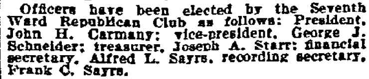 John H. Carmany - George J. Schneider - Joseph A. Starr - Alfred L. Sayers - Frank C. Sayrs |