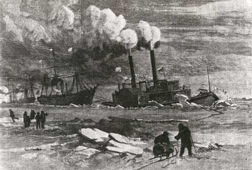 The Ontario and the Western were built by Dialogue in 1908 and were operated by the Ontario and Western Railway. Pictured here, left to right, are Erie Railroad's Daniel Willard, O&W's Ontario, Lehigh Valley's Perth Amboy and Lackawanna's Scranton at Vineyard Haven, Matha's Vineyard due to ice. |
