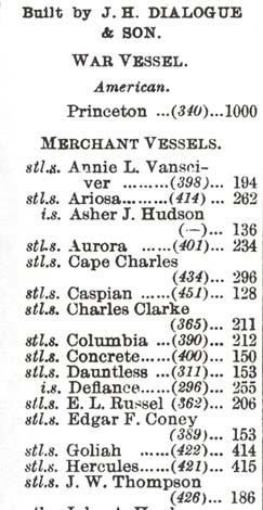 1- The firm name was listed as "National Iron & Shipbuilding Company" in the 1870 Camden County Census, but this name seems never to have been used. During the partnership's duration the company is also referred to as "Wood, Dialogue & Co." and "Dialogue, Wood & Co." 2- The date of the name change to include John H. Dialogue, Jr., is presumed. In 1885 the younger Dialogue, at twenty-three years of age is assumed to have completed his shipyard apprenticeship and become a principal of the firm. While the exact accuracy of this date sequence cannot be verified, it rep-resents the most complete listing of validated names and dates available. The published obituary of John H. Dialogue, Sr., the Scientific American supplement of 1945 Iron and Steel Hull Vessels of the United States 1825-1906, by John Harrison Morrison, and the article "Two Hundred Years of Naval Shipbuilding in the Delaware Valley," by Robert S. Egan, Society of Naval Architects and Marine Engineers, Spring Meeting Papers, June 2-5, 1976, state dates that conflict with the above listing. It is felt that as the History of Camden County, published in 1886 in Camden, was a contemporary work, its dates for Dialogue's early history are most likely to be correct. Notes 1- George Prowell, History of Camden County (Camden, N.]., 1886),383. 2- A. Storer, A Simple History of the Steam Engine (London, 1969), 111-12. 3- Robert S. Egan, "Two Hundred Years of Naval Shipbuilding in the Dela-ware Valley," Society of Naval Architects and Marine Engineers, Spring Meeting Papers, Philadelphia, Pennsylvania, June 2-5, 1976, 1-22. 4- David B. Tyler, The American Clyde (New York, 1958),26-27. 5- Census Office, County of Camden, Products of Industry for Year Ending June 1, 1870, 1. 6- Dictionary of American Naval Fighting Ships (Washington, D.C., 1959), 2: 141. Colfax was loaned to the U.S. Navy for World War I and was returned to the U.S. Coast Guard in 1919. 7- Log of correspondence between League Island Navy Yard and Navy De-partment, correspondence entry for December 31, 1876, "Completed by agreement at R. Wood & Dialogue," Office of Naval Records and Library, National Archives and Records Service. 8- Philadelphia Inquirer, October 27, 1898 .. 9Valuable Ship Building Plant of John H. Dialogue, an auction brochure of the Samuel T. Freeman & Company, pages 46 and 49, listed a total of 146 hull models in two lots. This figure might represent an estimate of the Dialogue ship-yard's total output. 10- Dialogue had constructed several steamships for Luckenbach in his own yard, among them the 3,905-ton Lewis Luckenbach, the largest vessel launched at the Dialogue works. nj |