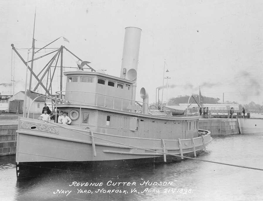 Built in 1893 for the Treasury Department, the hudson was the Revenue Service's first vessel to have a steel hull and triple-expansion plating. The hudson was assigned to New York harbor before coming under naval direction for the Spanish-American War. On 11 May 1898 the cutter hudson , along with the Navy warships Winslow , Machias , and Wilmington , had pursued three Spanish gunboats into the bay of Cardenas, Cuba. There, shore batteries fired on the U.S. vessels and disabled the Winslow , knocking out her steering and a boiler, thereby putting Winslow adrift. The accurate Spanish fire wounded the Winslow's commanding officer and killed another officer and many of the crew. hudson returned to service with the Treasury Department out of New York. She continued with her traditional duties and was once again taken into the Navy for service during World War I beginning on 6 April 1917. She continued her service with the Navy until returned to Treasury Department control on 28 August 1919. She returned to service with the Coast Guard until she was decommissioned in 1935. |