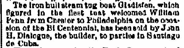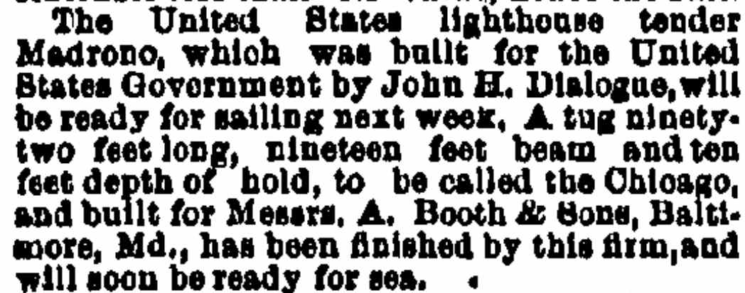 , an iron tug, was built in 1879 by John H. Dialogue