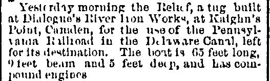 was a tug, built in 1882 by John H. Dialogue of Camden NJ, as