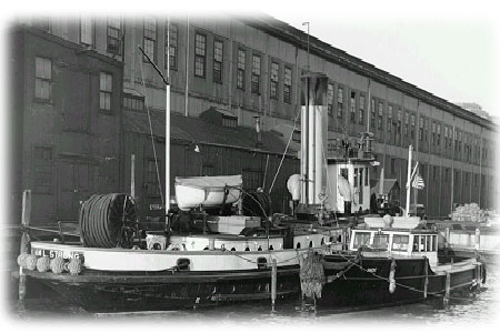 A fireboat built for the Fire Department of the City of New York's Marine Division, the William L. Strong was built at the Dialogue shipyard in 1898. 100' long with a 24' beam, she drew 12'. The William L. Strong could put 6500 gallons of water per minute on a fire. Built with a steel hull, the Strong was coal-fired with a single screw engine. She was stationed at Grand Street and the East River as Engine 66 for 50 years, until being removed from service in May of 1948. |