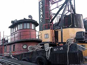The New York Central 13, later known as the Hay-De , a tugboat docked in Staten Island, N.Y., was in imminent danger of being sunk as a reef. Hay-De starred, along with Bruce Willis, in the final scene of the 1991 movie "Billy Bathgate." The boat was built as New York Central 13 in 1887 by the John H. Dialogue Ship Building Works of Camden, NJ for the New York Central Railroad, which pushed barges that carried boxcars across New York Harbor. When she was built, this was the main way that cargo and merchandise was moved in and around the city, but with the advent of containerized truck service and the digging of the Lincoln and Holland Tunnels, barges and the tugs that pushed them were phased out. Its riveted iron hull is one of about a half-dozen surviving Dialogue hulls. The boat's engine was dieselized in the 1950s and still works. Although the boat floats without leaking, the midsection of the deck house was removed in 1980. As a Dialogue-built boat with a riveted hull in decent condition, old New York Central 13 has a lot going for it, not the least of which is the robust tugboat construction that keeps it floating after 115 years. After a long and productive career, she was days away from being sunk as an artificial reef before being saved by her current owner in August, 2002. She is being restored at Piers 62 & 63, North River (West 23rd Street) in New York NY.