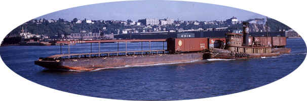 carfloat and boxcars on the Hudson River |