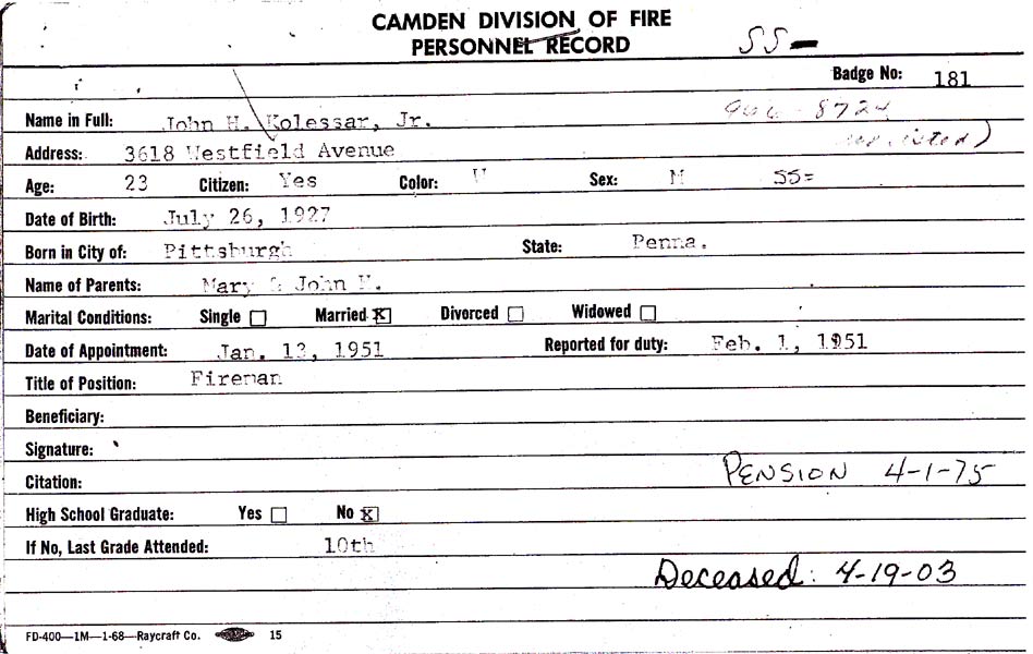 V. Michalak John Giuliano - Robert Briggs - Alfred R. Pierce - Engine Company 9 |