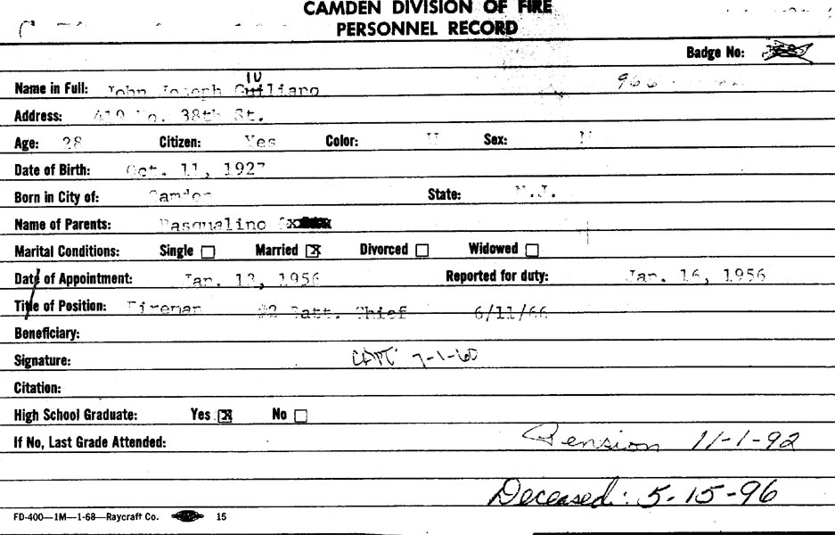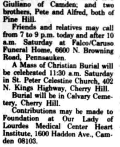 Mrs. Carmella Massi - John J. Giuliano - South 5th Street - Willie Carter |