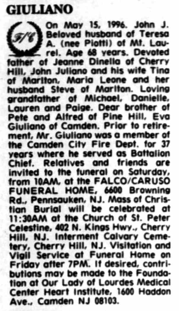 Joseph Martin - Ken Steward - Joan Steward - Mt. Ephraim Avenue - John J. Giuliano |