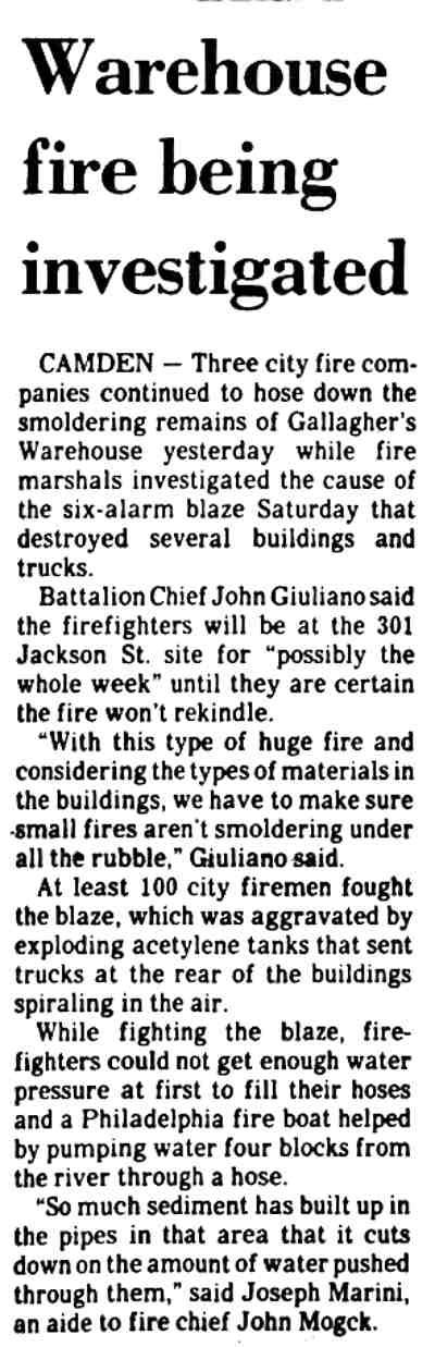 South Camden. Later that evening, another third alarm damaged a