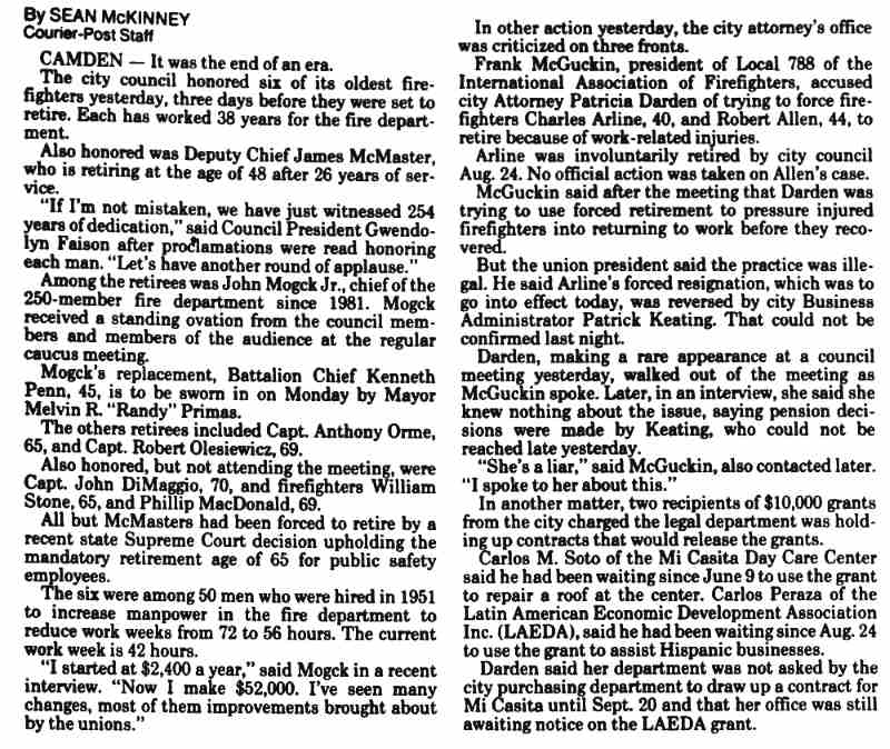 the Camden Fire Department, the other two men being Philip