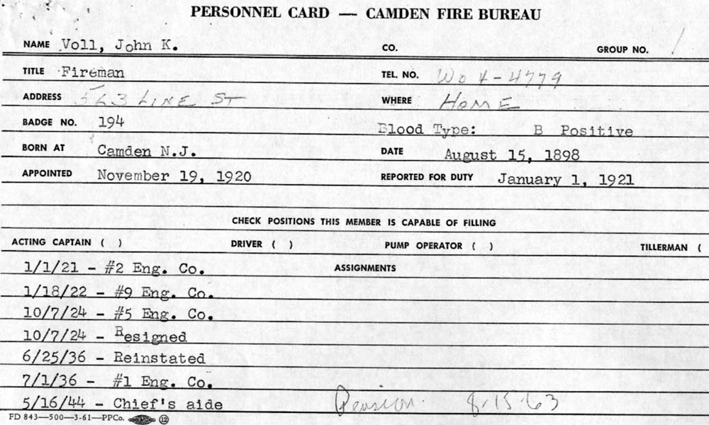 Engine Company 1 John K. Voll - Andrew "Fritz" Miller Camden Courier-Post |