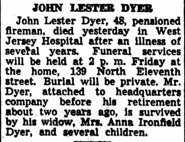 Lester Dyer was working as a Camden City at Ladder Company 1 and was