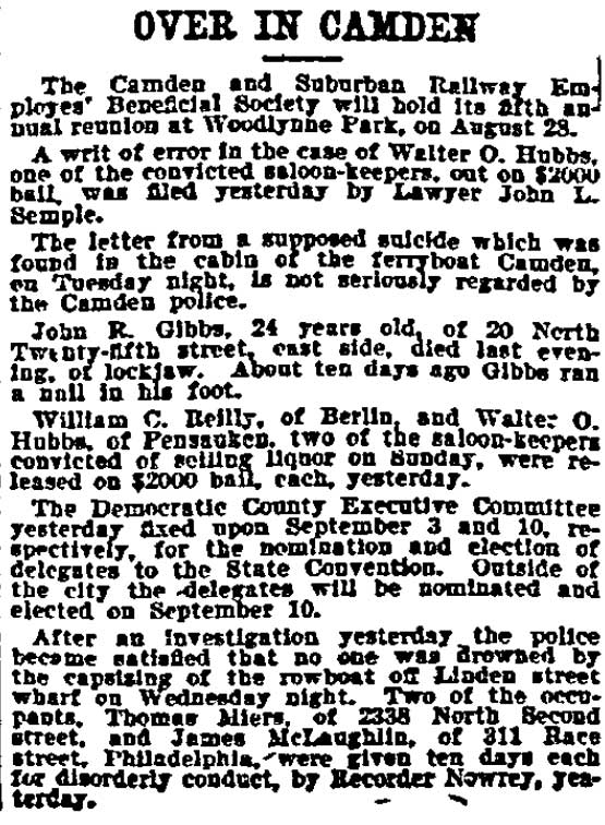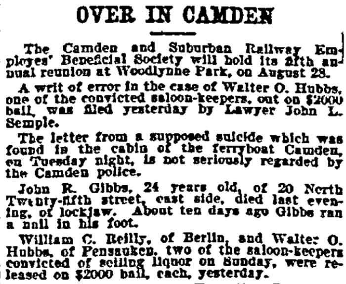 Philadelphia Inquirer William "Blackstrap" Davis Josiah Stevens John L. Semple Joseph G. Savage 1221 Hyde Park Henry S. Scovel Josiah Stevens Theodore Lambert