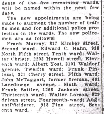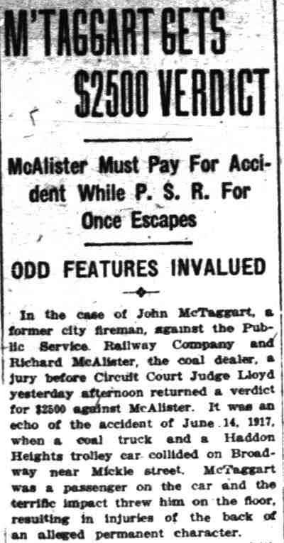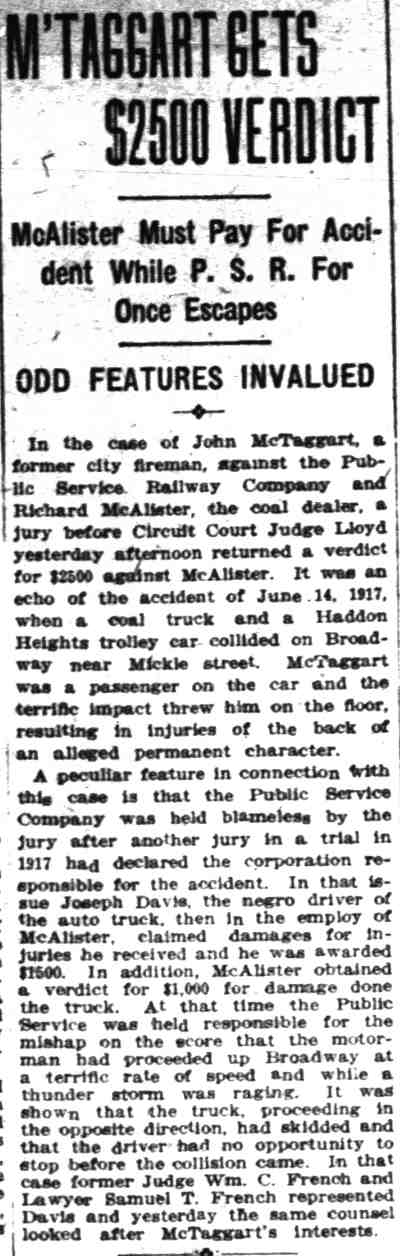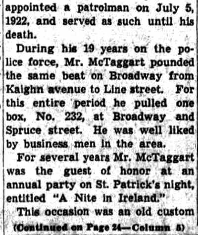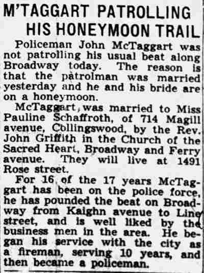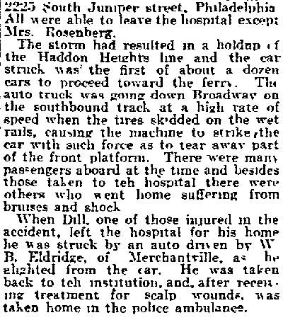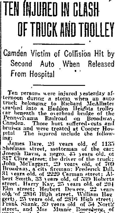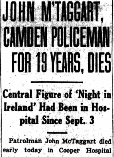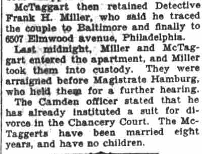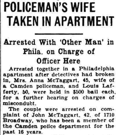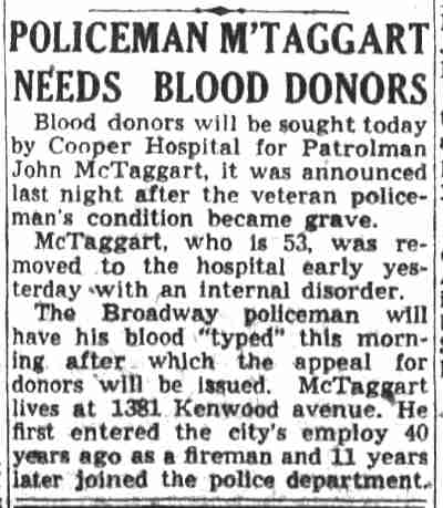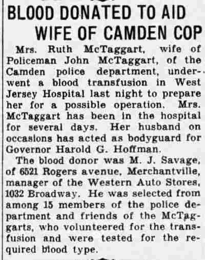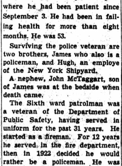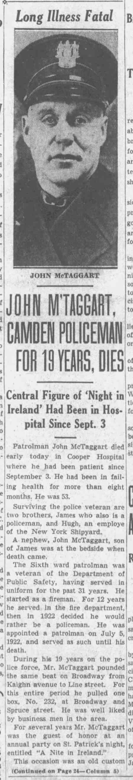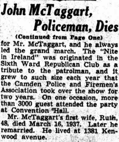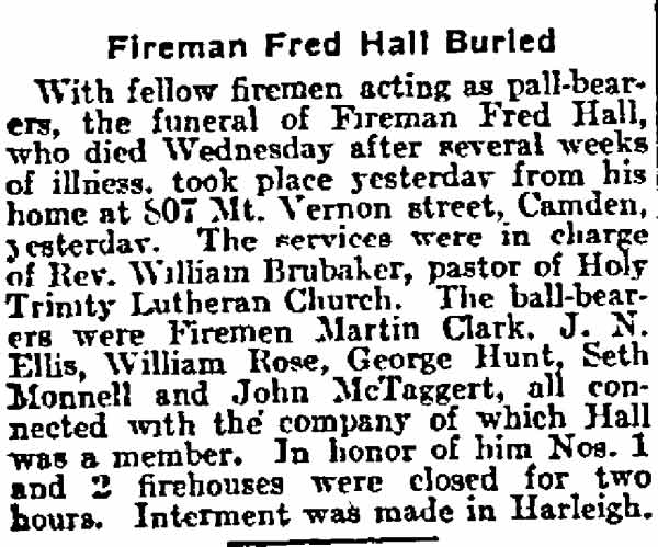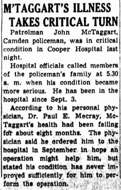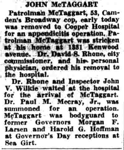 Camden Courier-Post * November 29, 1941 There are a three major errors in this story, 1> his length of service with the Fire Department, 2> his going straight from the Fire Department to the police, and 3> the omission of his first marriage. |