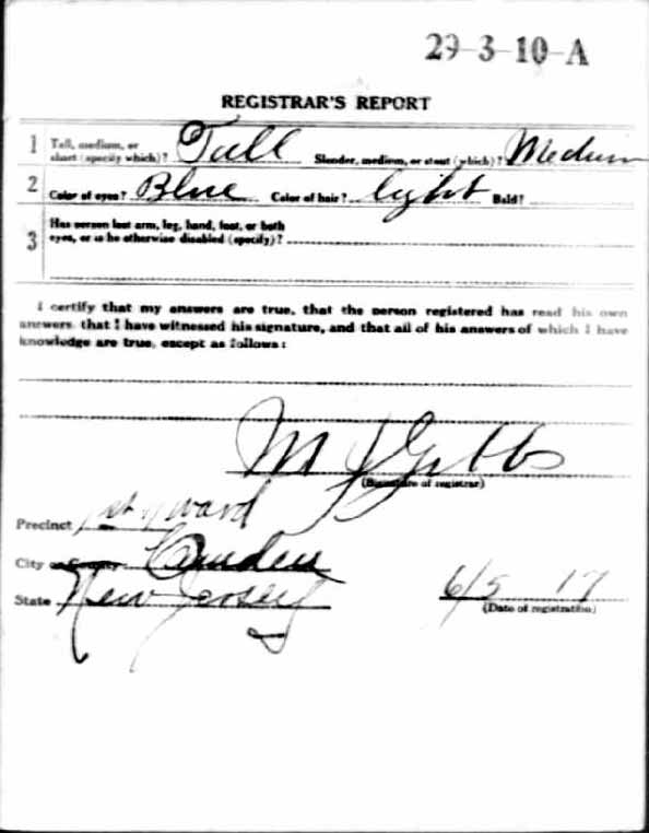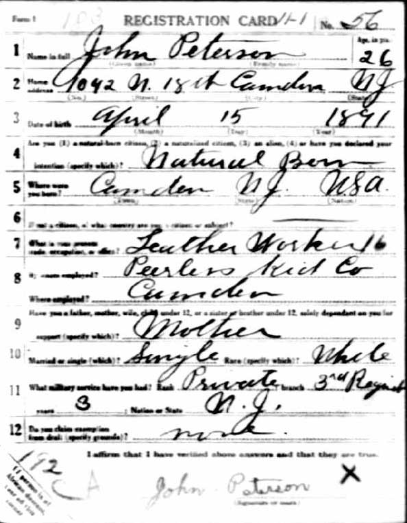When John M. Peterson registered for the draft on June 5, 1917 he was living with his mother at 1042 north 18th street in camden's cramer hill section.