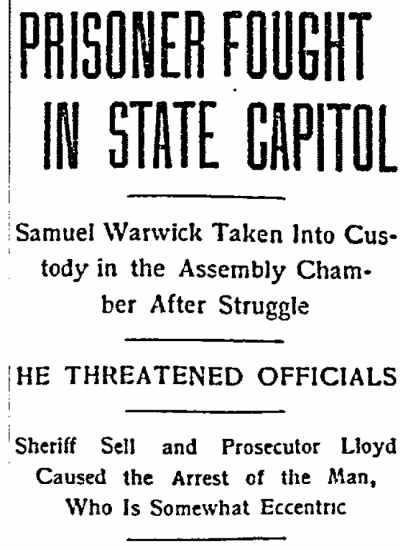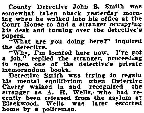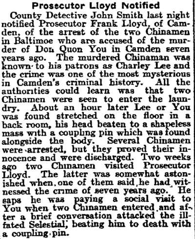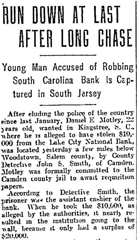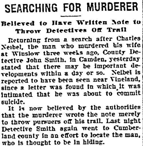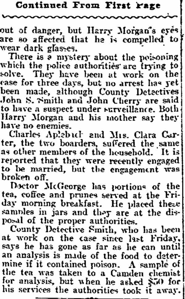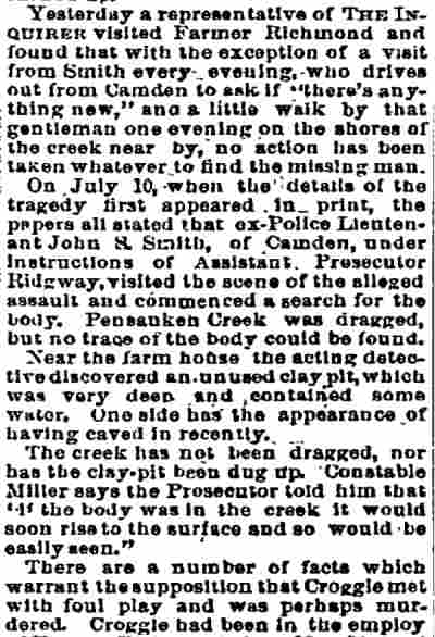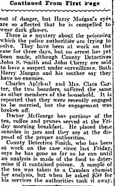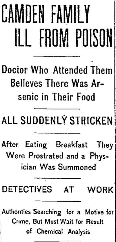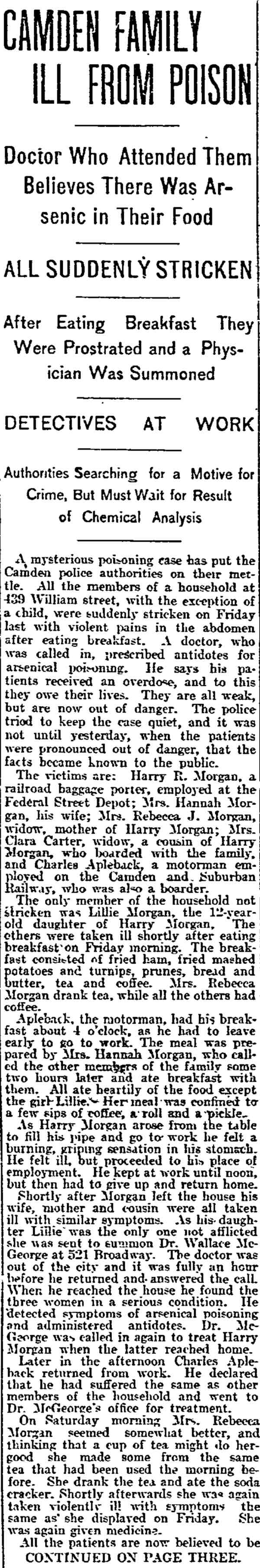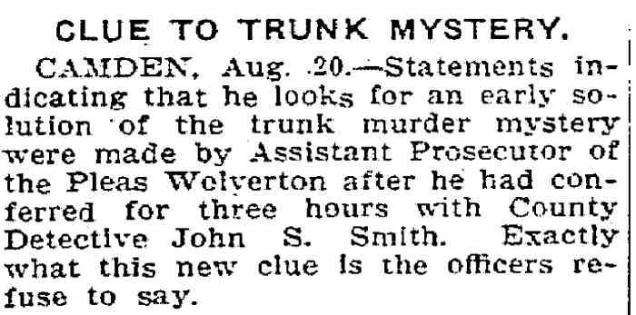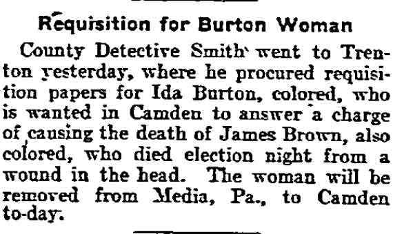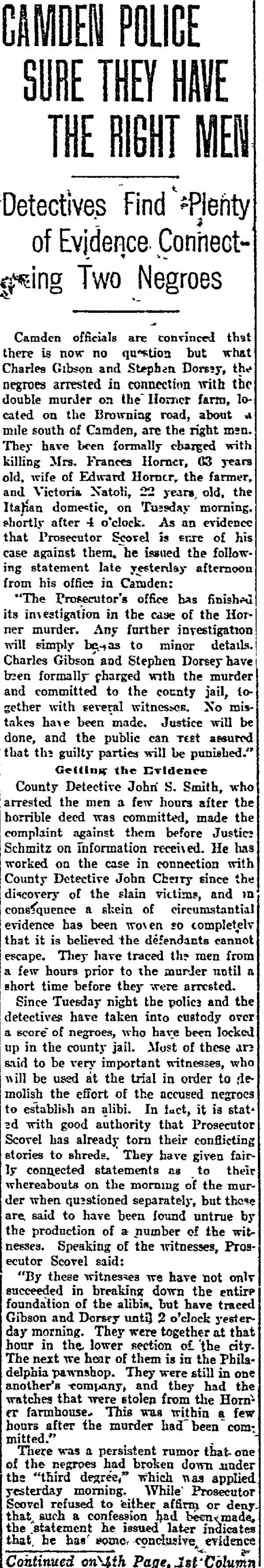 l l l l l l l l l l On October 1, 1902 Paul Woodward murdered two young boys by giving them poison. Frank T. Lloyd, then Camden County prosecutor, was responsible for leading the investigation and prosecuting the case. County Detective Cherry was involved in the investigation. Woodward was arrested on October 4, 1902. Detective Cherry was present later that day when Woodward was identified as being seen with the two victims. Woodward was indicted, tried, convicted of murder in the first degree, and on January 7, 1903 executed at the Camden County Jail.