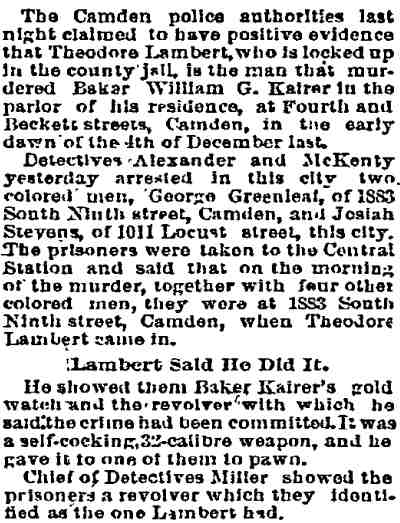 Philadelphia Inquirer Josiah Stevens Wilson Jenkins Lavinia Moore South 9th Street Richard S. Ridgway Patrick M. Gallagher john s. smith Theodore Lambert
