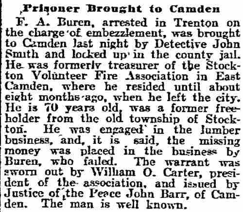 FerrisJr. - Charles Devaull John Hood - George D. Borton - James F. Davis - Joseph Devinney - George Holl - Joseph Nowrey William E. Anthony - David T. Campbell - John Pugh - John K. Esler - Harry Stetser Cornelius Schepperkotter - Dr. Francis J. Bicker - Jonas S. Miller - Allyn Brewer - Joseph Peacock - David A. Shreeve - Charles D. Heath - Frederick Krueger - F.S. Neipling Aaron Bryant - Jacob C. Lippincott - Thomas Wentz Jr. - William J. Thompson - John S. Smith George Williams - Charles C. Old - Jacob C. Daubman - Major William H. Tice Clarence T. Atkinson - James Burke - Thomas Bodell - Francis Ford Patterson Jr. |