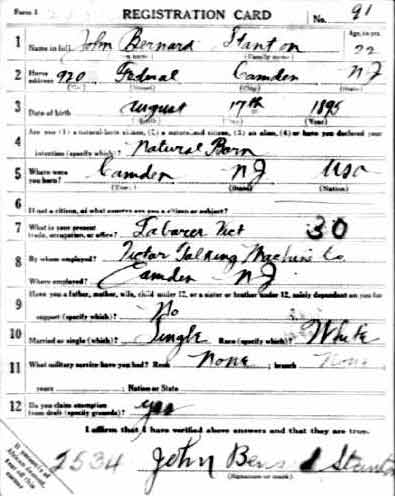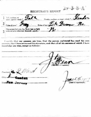 World War 1 Draft Card |