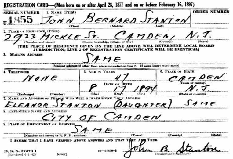 World War II Draft Card |