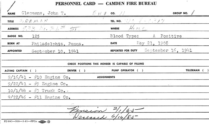 CAMDEN FIRE DEPARTMENT UNIFORMED PERSONNEL INDEX