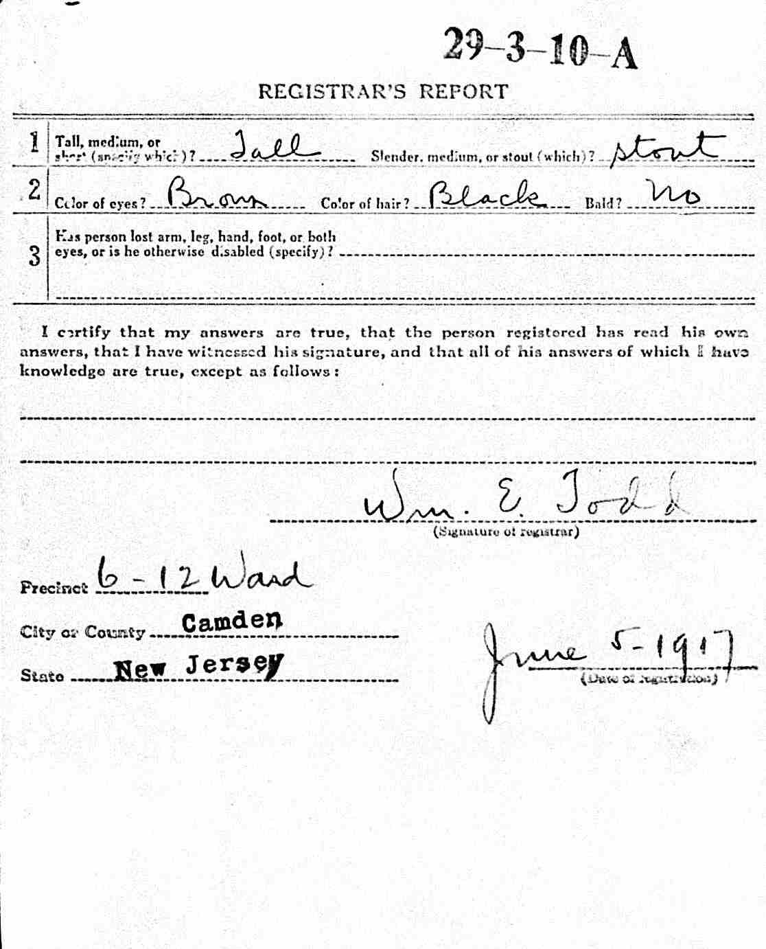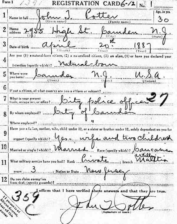 World War I Draft Card | |