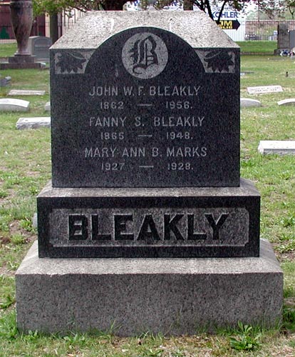 Mr. Bleakly married Fannie (Bartine) Smith, a native of Philadelphia and daughter of Mr. and Mrs. David Wesley Bartine, in Philadelphia, March 16, 1886. They have four children.