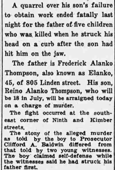 Thompson - May Thompson - Irene Thompson - Diamond Thompson Frederick Alanko Thompson - Onni " Esel" Thompson |