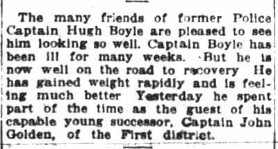 This story erred in reporting, as retirement at age 65 was NOT mandatory at the time. William E. Albert, Richard Golden, Frank Matlack, and Edwin Thomas did retire. John Golden, John Painter, Charles Fitzsimmons, Thomas Brothes, and William Lyons continued to work in the Police Department. John Golden was eventually promoted to Chief of Police. |
