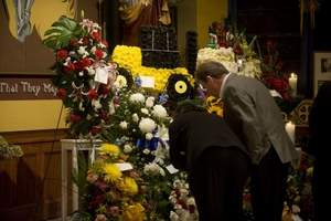 Mourners pay their respects to |