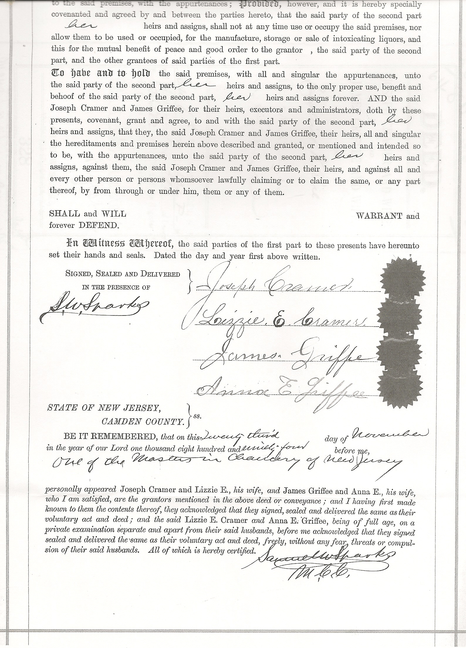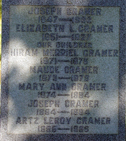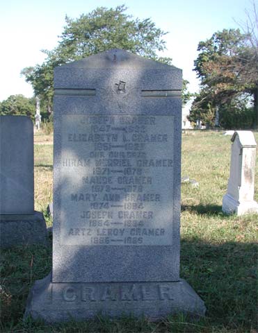 JOSEPH CRAMER was the brothe r of Alfred Cramer, who developed what came to be known as the Cramer Hill section of Camden, and for whom the Cramer School in East Camden is named. Joseph Cramer also had a long career in real estate, and was responsible for developing large tracts in East Camden and Pennsauken, including the Delaware Gardens section near River and Browning Roads. Joseph Cramer passed away in 1932. He is buried at Evergreen Cemetery in Camden next to his first wife, Elizabeth, and five of their children who died young. When he was developing East Camden , he named Merriel Avenue, between 36th Street and Rosedale Avenue, in honor of his wife's family. |