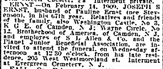 Morgenweck - Sperry & Hutchinson - Camden Bowling Alleys Gardner Corson was appointed to the Fire Department in November of 1907. |