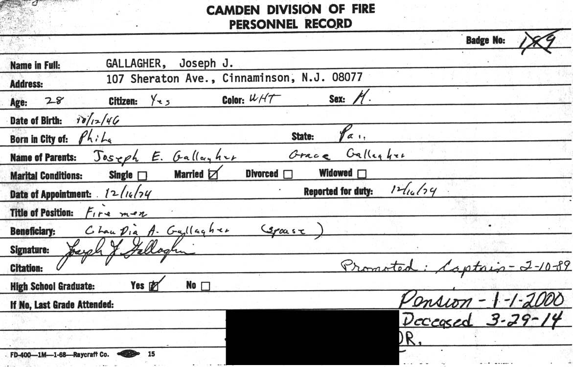 In the last week or so, but most especially in the last two days, many have asked me “Who is Joe Gallagher?” Joe is the man for whom we named our third son- Casey Joseph. This is how much this man means to my family. Joe retired as a Battalion Chief from the Camden (NJ) Fire Department after an exemplary 20+ year career. I first met Joe in the late 1990 when I was taking Firefighter I at the Burlington County (NJ) Fire Academy. He was an instructor for several topics- one I can remember vividly was HNA’s (hose, nozzles and appliances) and SCBA. He was also a supervisory instructor/stoker for several of the live burns. I can remember one burn in particular where he really tore into me for standing up too much inside the burn building during live fire. Eventually I figured out on my own not to do it anymore when he stoked up one fire a little bit above and beyond a simple training burn. It burned all right- my ears, shoulders and neck. I was known as “the kid from Pennsylvania” as I was the only one from Pa…….Because Burlington County ran the class not long after I joined the fire company when I was 16, and also because they allowed Junior Firefighters to go interior for training. I don’t think this is done anymore. At the graduation ceremonies, all of the instructors congratulated us, and I can remember Joe in particular shaking my hand and saying “I can see you going places in this business; you have it in your blood.” A few years later, my close friend Joel Bain was hired onto the Camden Fire Department. He was assigned to Engine Company 9 at 27th and Federal Streets with Ladder Company 3. The first time I went to visit Joel, I was pleasantly surprised to find that “Instructor Gallagher” was “Captain Gallagher”, the boss of Ladder 3 on the same shift as Joel. He immediately recognized me as “The Kid from the other side of the river.” Eventually the visits to 27th and Federal were to visit both Joel and Joe. Whenever the companies would turn out for an alarm, Joe would throw me onto Ladder 3. It was a great experience to a 17 year old kid from a slow volly company in the suburbs of Philly to be riding with an urban truck company on a beat up Mack Aerialscope through the streets of some of the worst ghettos in the United States. Joe, Joel and the other members of Engine 9 and Ladder 3 taught me a lot about firefighting, but more about being a part of the Brotherhood. In time, Joe took the exams for Battalion Chief, and was promoted. Joel eventually moved on to other companies within the Department, where I would go and visit and spend time, but I also made time to go visit with Joe, who was assigned to Battalion 2. Joe and I developed a friendship outside of the fire service as well through our mutual love of aviation and airplanes. He was a member of the Civil Air Patrol, and spent a lot of time at McGuire Air Force Base. We learned that we had mutual acquaintances at the McGuire AFB Fire Department. At the time, Joe and his wife Sue lived primarily in Riverside, New Jersey- but also owned a vacation home in the Outer Banks of North Carolina where they spent a lot of time. Our friendship expanded to the point where Joe and Sue invited me- insisted that I spend time at their place in the Outer Banks. I think my first time there was a long weekend around 1995 or 1996. My trips there became more frequent and longer in duration. Towards the end of his career, before he retired- they sold their home in Riverside NJ and Sue moved to the OBX house full time. Joe made do with a small apartment in NJ and also traveled between the OBX and NJ in between tours at the firehouse. There are not words adequate enough to describe the enormity of Joe and Sue’s hospitality. I knew Joe to be an incredible cook in the firehouse, but his culinary abilities in his own kitchen with some fresh seafood could rival that of any professional Chef’s. Joe and Sue lived to entertain guests. And woes you if you tried to offer them some money to help out with the groceries for the week. When I met my wife Star, she had never been to the Outer Banks before. When it came time for us to take a vacation together- I think she was somewhat hesitant to go stay with a couple that she had never met before. I explained to her that it was unlike staying with anyone you have ever stayed with before- there is not that feeling of intrusion or being a pain in the ass to your hosts. Joe’s home was large enough that guests had their own “wing” with a bedroom and sitting area with a TV, as well as a large bathroom. Joe and Sue always made it a point to stress that you could “come and go as you please” but would always want to know when you would be “home” so that Joe would know when to make dinner!!! Their hospitality also extended to their home- the hot tub, Joe’s movie collection, his tools if you needed to do a repair to your car…….. and beach supplies- you name it, they have it. Beach chairs, blankets, tents, awnings, umbrellas, kid’s shovels and pails, and of course- Joe’s kites!!! Joe LOVED to fly kites with the kids. It should never be forgotten that Joe was always a kid at heart. No matter what you needed for your beach trip, it was yours for the taking. And Joe would always educate you on the best beaches to go to and what entrances to use. And woes you if you forgot to “air down” the tires on your 4x4 and you got stuck. Joe would always wag a finger at you as he said “don’t forget to let the air down!” And once in a while, Joe and Sue would join you on the beach if they were feeling up to it. Joe and Sue were always delighted to see our kids- who were treated as if they were their own grandchildren. There has not been a holiday or birthday since Cody was born in 2003 that the boys have not gotten a card and check. And wow were they spoiled rotten whenever we would visit. There was always too much candy, potato chips, cakes, cookies……Yep. You name it, they 