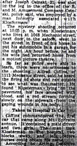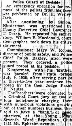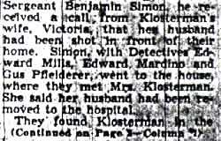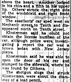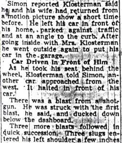 FRED KLOSTERMAN HIT BY PUMP GUN FIRE | ||