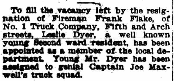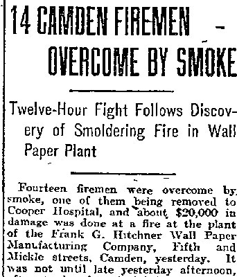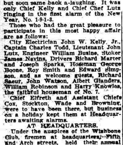 Marter Joseph Sparks - George Boone - Roy A. Smith - Edward Simpson - Henry C. Knowles Samuel S. Elfreth - George P. Cox - Walter W. Browning - George B. Wade - John A. Stockton Joseph F. Ernst - John A. Dold - Josiah Sage - Daniel Smith - Arthur Wingate - Joseph T. Johnson Harry Hankins - William Laird - William Elberson - John H. Lennox - Martin Carrigan - Charles Cook Harry Selby - Herman O. Kreher - Daniel P. McConnell - William Howell Tatem Harry C. Anderson - Steward Bakley - Joseph Maxwell William Robinson - Richard Sauer - John Watson - Albert Glanders - Ladder Company 1 Charles Menke - Edward S. Gahan - Engine Company 7 - Engine Company 2 |