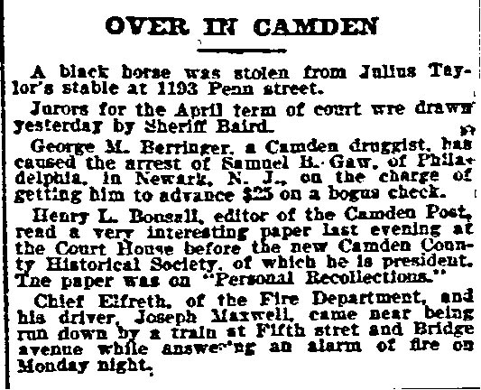 Camden Post-Telegram * January 2, 1913 |