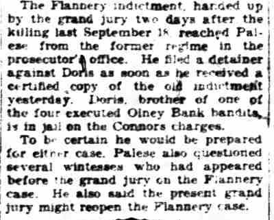 Flannery Released On Bail Joseph 'Mose' Flannery , declared by detectives to have precipitated the battle in the Sixth Ward Republican Club which resulted in the slaying of Joseph Cimini last Saturday, was released from the Camden county jail us afternoon under $5,000 bail. samuel orlando , attorney for Flannery walked into Camden Criminal Court with an order for flannery ’s release, which was immediately signed by Judge Samuel M. Shay. Bond was furnished by flannery ’s brother, James, who lives at 1123 Princess Avenue. flannery has been accused as an accessory to the murder of Cimini by Joseph “Polack Joe” Deven and also as a material witness. He was also charged with carrying concealed deadly weapons and with attempted hold-up and with assault and battery with intent to kill, the latter accusations coming in connection with two other cases. The bail bond signed by Judge Shay covers all the charges. Alone among those who were’ taken into custody for the fatal shooting last Saturday morning, flannery had refused to make any statement to detectives. His replay to all questions has been “See my attorney sam orlando.” Until today, however, it was not definitely known if orlando had been retained to represent flannery . Arrested with flannery and accused on the same charges, Russell Sage, taxicab driver, remains in jail as does Deven, the latter being held on a murder charge. Other material witnesses to the shooting are out on bail of $1,000 each. The order for bail for flannery , it was learned, was obtained from Prosecutor Ethan P. Wescott by the accused man’s brother. After his clients release, orlando said he had “no comment to make on the case at the present time.” |